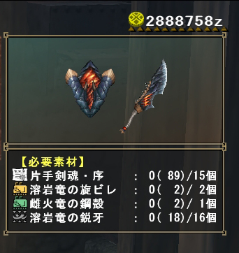 生産には 上位の素材「溶岩竜の鋭牙」が必要に・・・・